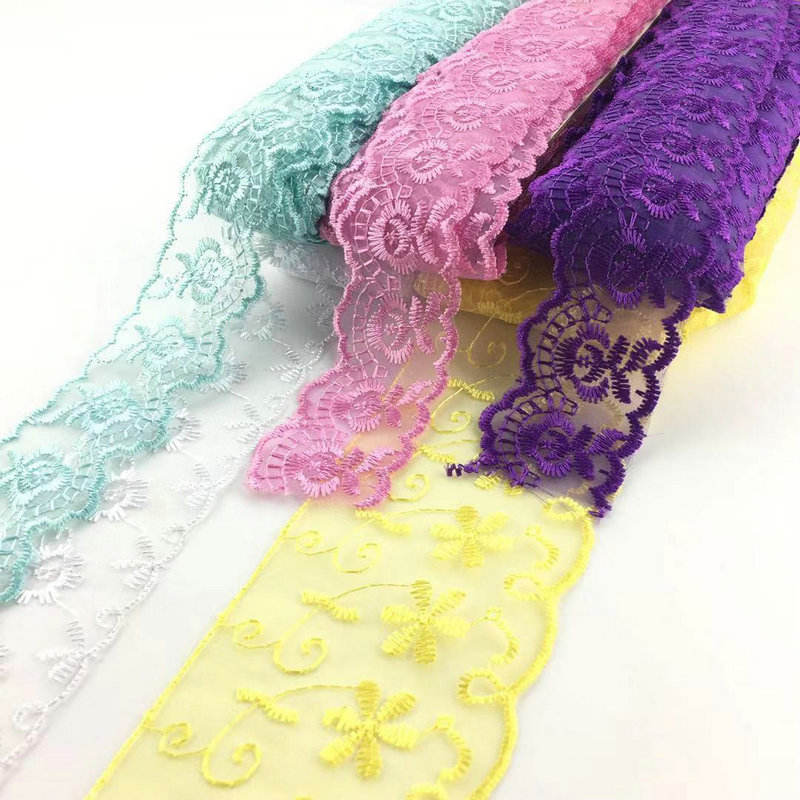 Klasický dizajn viac farieb Organza Lace Trim výšivok organza čipky veľkoobchod s špičkovou organzou základňou a trojrozmernými vyšívacími technikami, má bohaté farby a je ľahký a priehľadný. Vhodné pre svadobné šaty, večerné šaty a dekorácie záclon