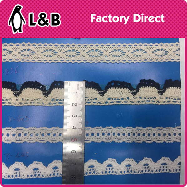 Vysoko kvalitné lemovanie čipky lacné 100% bavlnené čipky