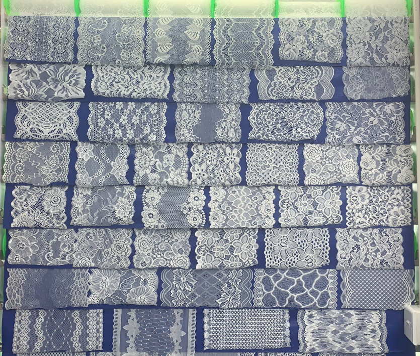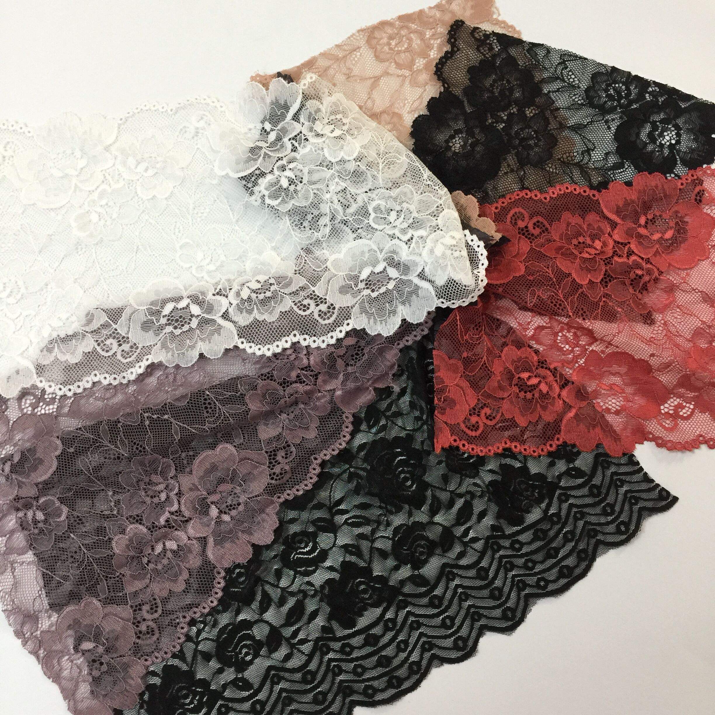 Horúci predaj Fancy nylon spandex čipky natiahnuté čipky elastické čipky pre spodnú bielizeň a spodnú bielizeň vyrobené z materiálu s nylonovým spandexom s vysokou elasticitou, je mäkký, priedušný a má silnú odolnosť bez deformácie. Je vhodný pre tesné oblečenie, ako je spodná bielizeň, tvarovanie a odevy pre dospelých