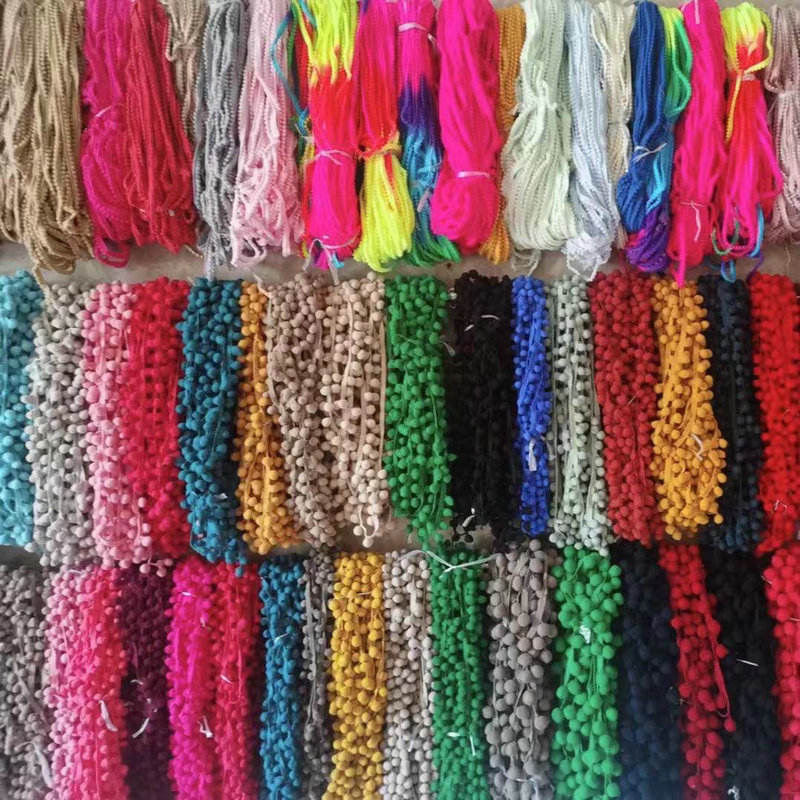 Viac farby guľôčkové čipky dekoratívne dizajn strapce pom pom poms orezanie vyrobené z vysoko kvalitného bavlneného vlákna/polyesterového materiálu, s dizajnom pom a strapcov, obsahuje bohaté a živé farby. Je vhodný pre detské oblečenie, domáce potreby, remeslá a dekorácie festivalov. Má mäkký dotyk, je odolný voči opotrebeniu a nezdrží gule.