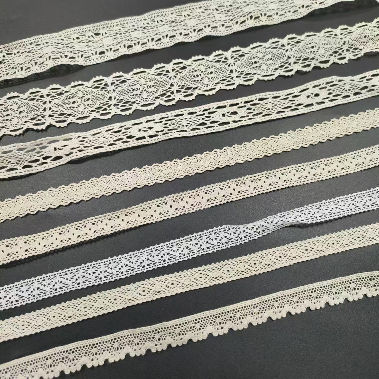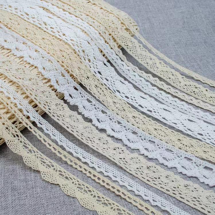 Biela 100% úzka bavlnená čipkovaná čipka háčkovaná čipka vyrobená zo 100% česanej bavlny, s ručne stehovanými a vyšívanými technikami, je prirodzene mäkká, priedušná a priaznivá pre pokožku. Je vhodný na detské oblečenie, vintage dámske oblečenie a domáce mäkké nábytok